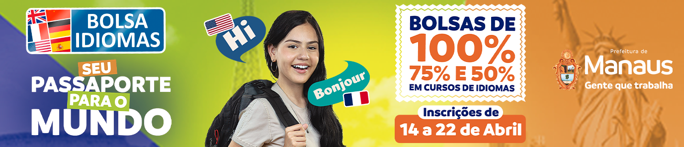 Mais informações, acesse o site: https://portalespi.manaus.am.gov.br/bolsa-idiomas/